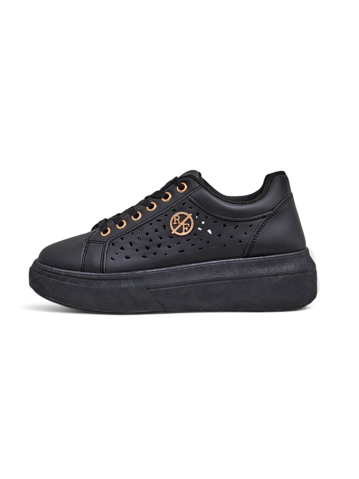 Posebnost tega modela je trden, raven podplat z višino 4,5 cm, ki odlično blaži vsak korak, ne da bi obremenjeval stopala. Dodatek zlatih očesc in logotipa daje supergam luksuzen značaj, ne da bi pri tem izgubile univerzalnost. Kalista Nero se odlično prilega trenutnim modnim trendom – masivni čevlji s platformo so trenutno prisotni v garderobah modnih navdušenk po vsem svetu.