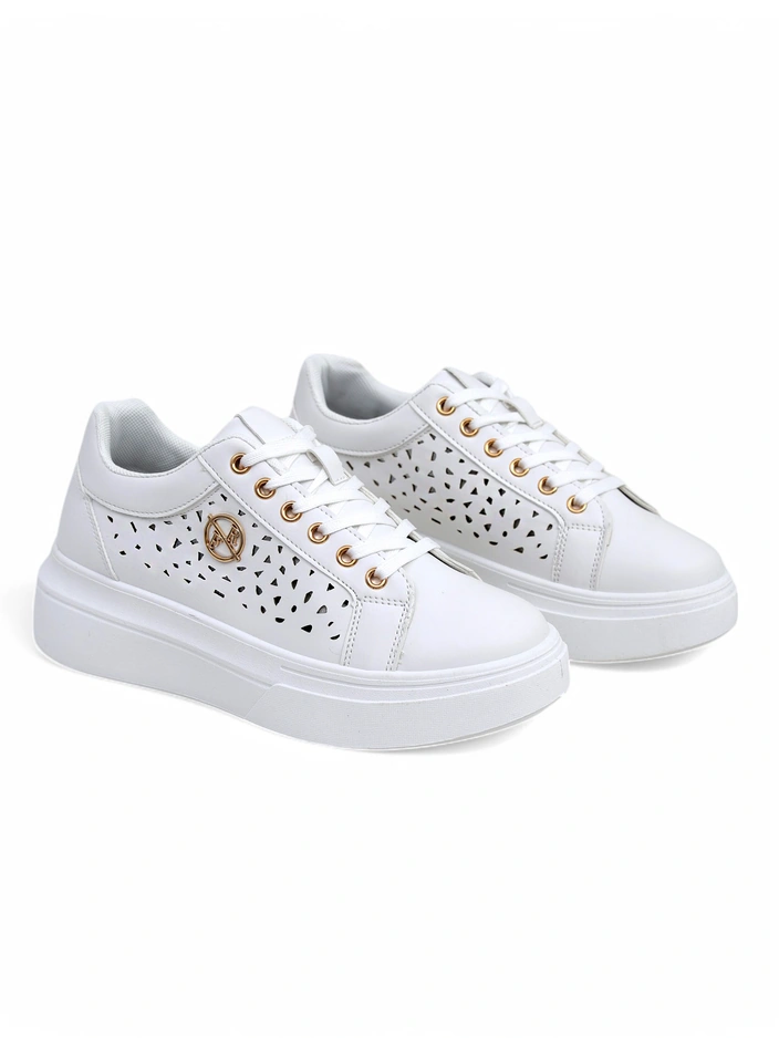 Ženske superge Calista Bianco iz eko usnja, preluknjane, spomladanske 4,5 cm