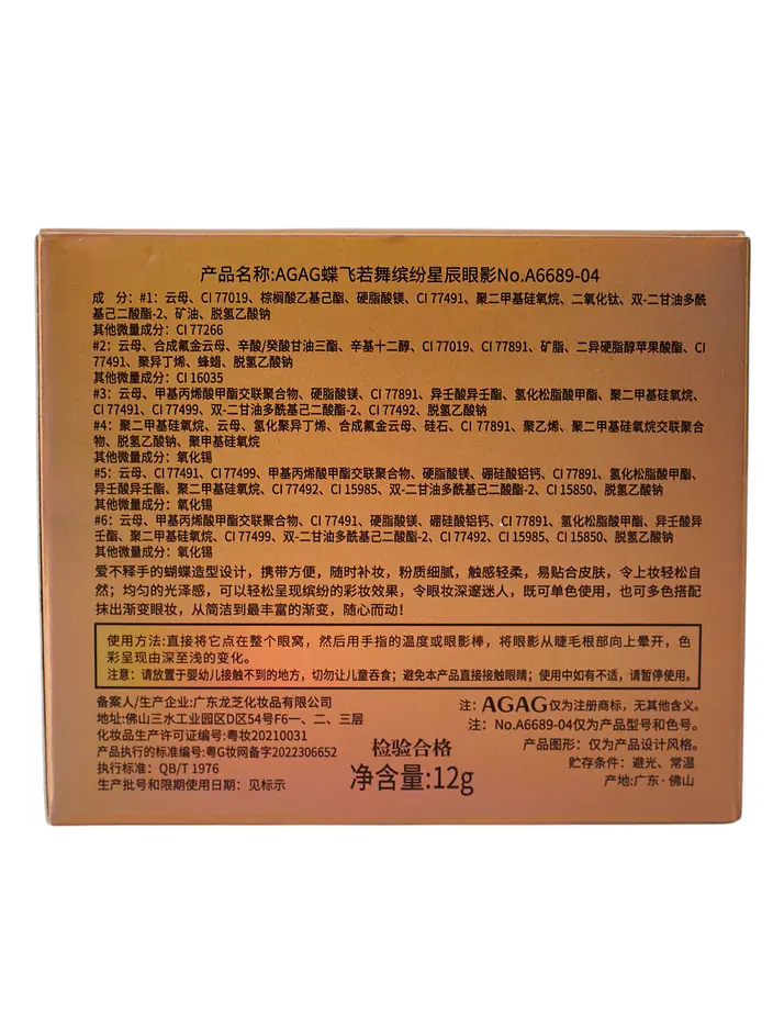 - Paleta 6 senčil za oči v obliki metulja ponuja široko paleto barv, ki se enostavno mešajo in omogočajo ustvarjanje subtilnih ali intenzivnih videzov. S kakovostnimi formulami so senčila dolgo obstojna, enostavna za nanos in popolnoma poudarijo pogled.