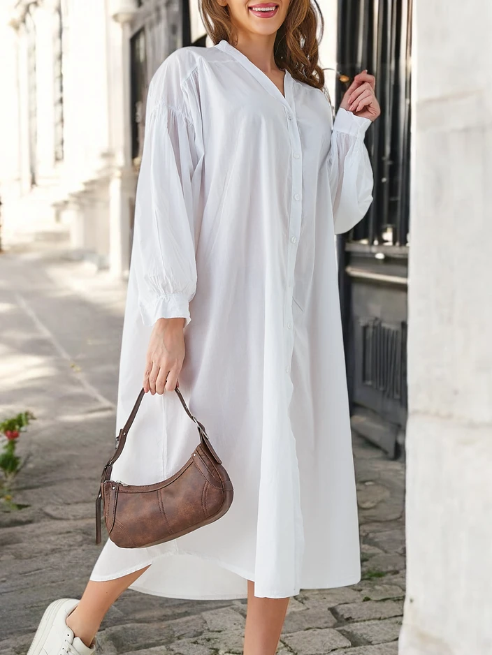 - Klasična dolga ženska srajca a'la obleka, izdelana iz prijetnega materiala. Ima V-izrez in dolge rokave. Preprost kroj zagotavlja dobro prileganje vsakemu silhueti! OPOMBA: Natančnost merjenja (+/-) 1 cm.