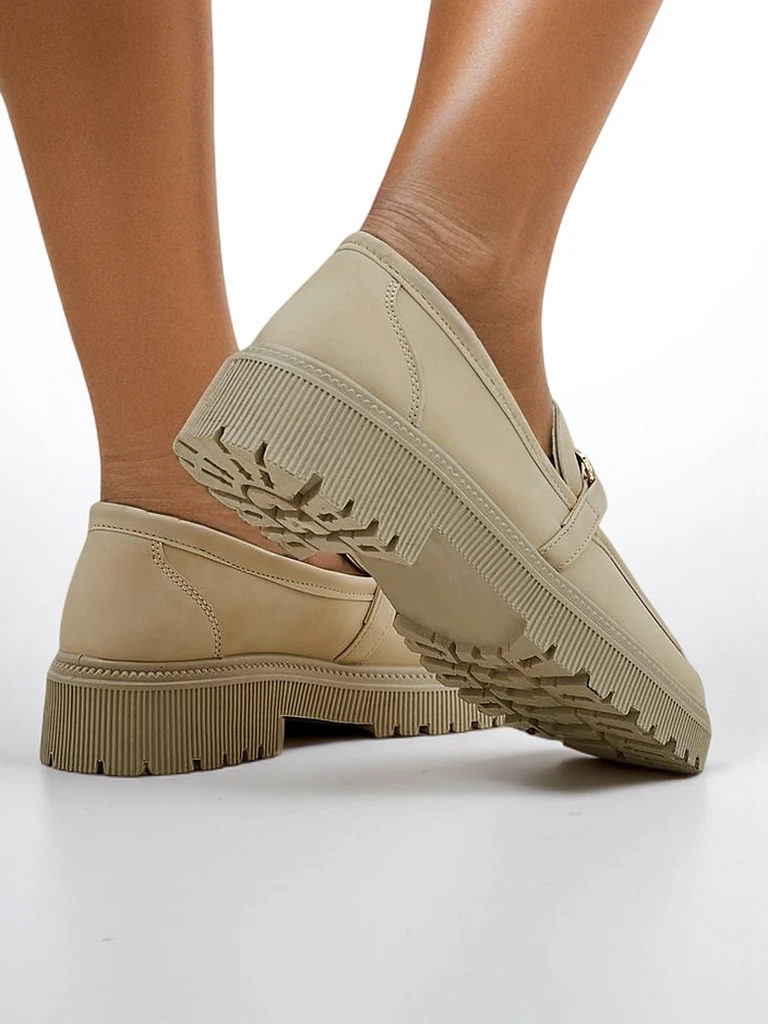 - Lahke ženske mokasine na ravnem podplatu. Model je v casual slogu in je izdelan iz ekološke usnje, podplat je tkanina. Popolne za pomladne kombinacije!