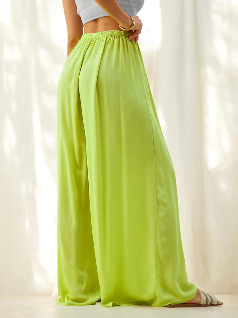- Širše hlače iz lahkega blaga, model ima elastičen pas. Udobne in prijetne! OPOMBA: Natančnost meritev (+/-) 1 cm.