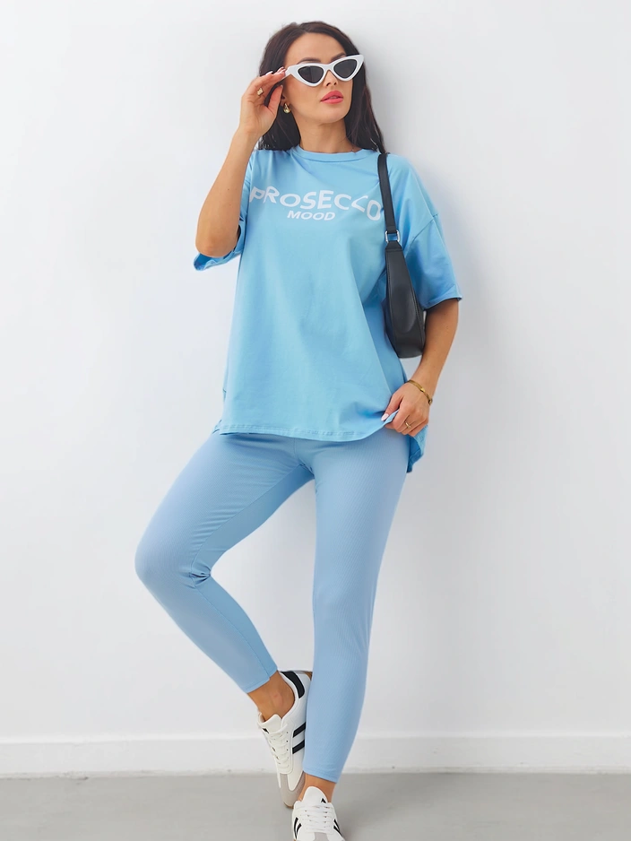 - Ženski bombažni komplet s kratkimi rokavi in leggingi je udobna in stilna izbira za vsakodnevno nošenje. Mehka tkanina zagotavlja udobje, preprost dizajn pa je popoln tako za sprostitev kot tudi za aktivnosti. Idealna izbira za tople dni.