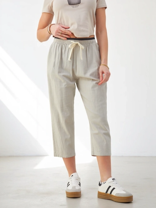 - Fantastične široke hlače iz lahkega blaga, model ima 2 žepa, elastičen pas in vrvico v pasu. Nepogrešljiv kos v vaši garderobi! OPOMBA: Natančnost merjenja (+/-) 1 cm.