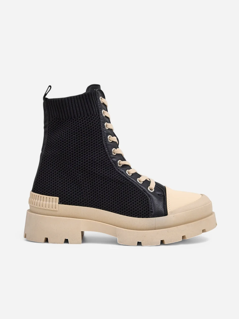 - visoke ženske superge iz tekstilnega materiala. Model na udobnem, debeljem podplat. Odlično za ustvarjanje sproščenih oblačil!