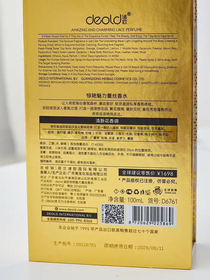- Parfum 100 ml z nežno zgornjo noto vijolice, veseljem srcem frezije, limone in bergamotke ter svežo osnovo pomarančne cvetlice in grenivke – lahka, cvetlična-citrusna dišava, polna energije in svežine.