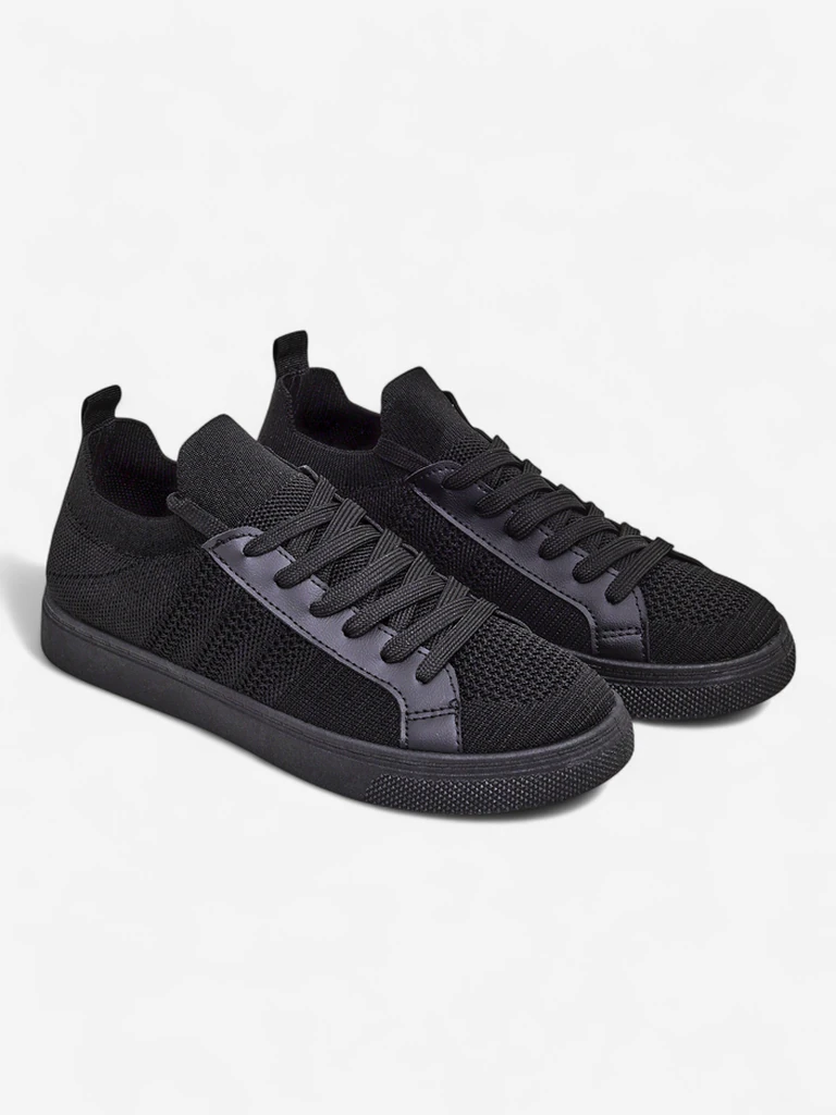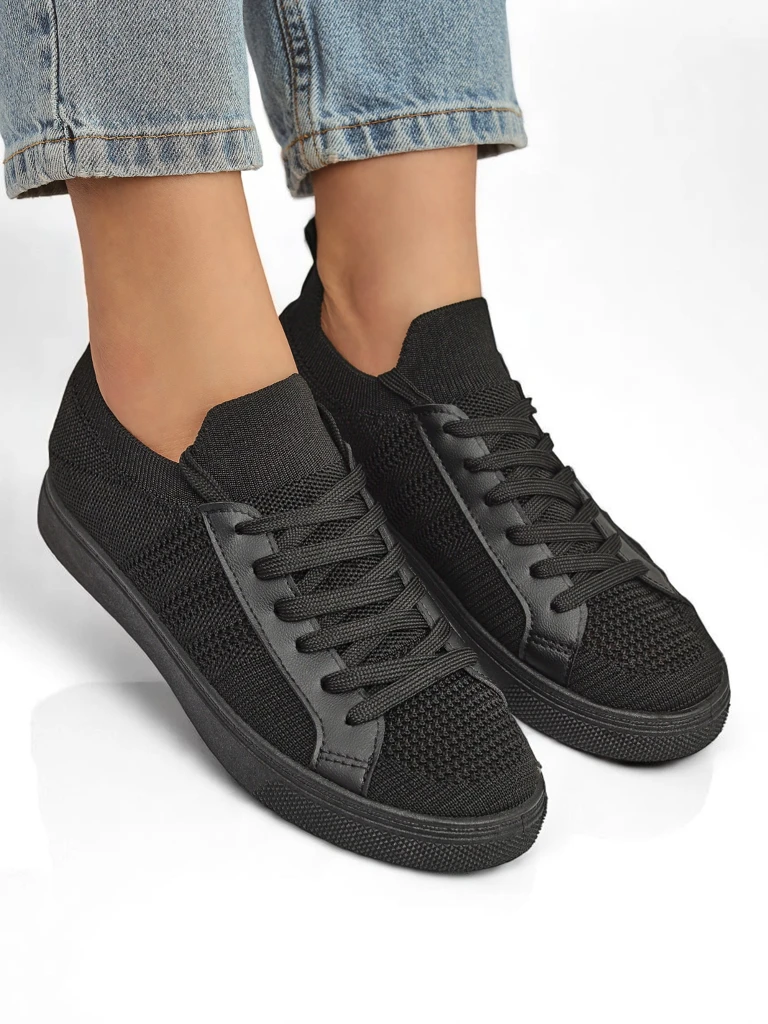 Ženske superge Livia Nero – črni športni copati iz tkanine in eko usnja na ravnem podplatu