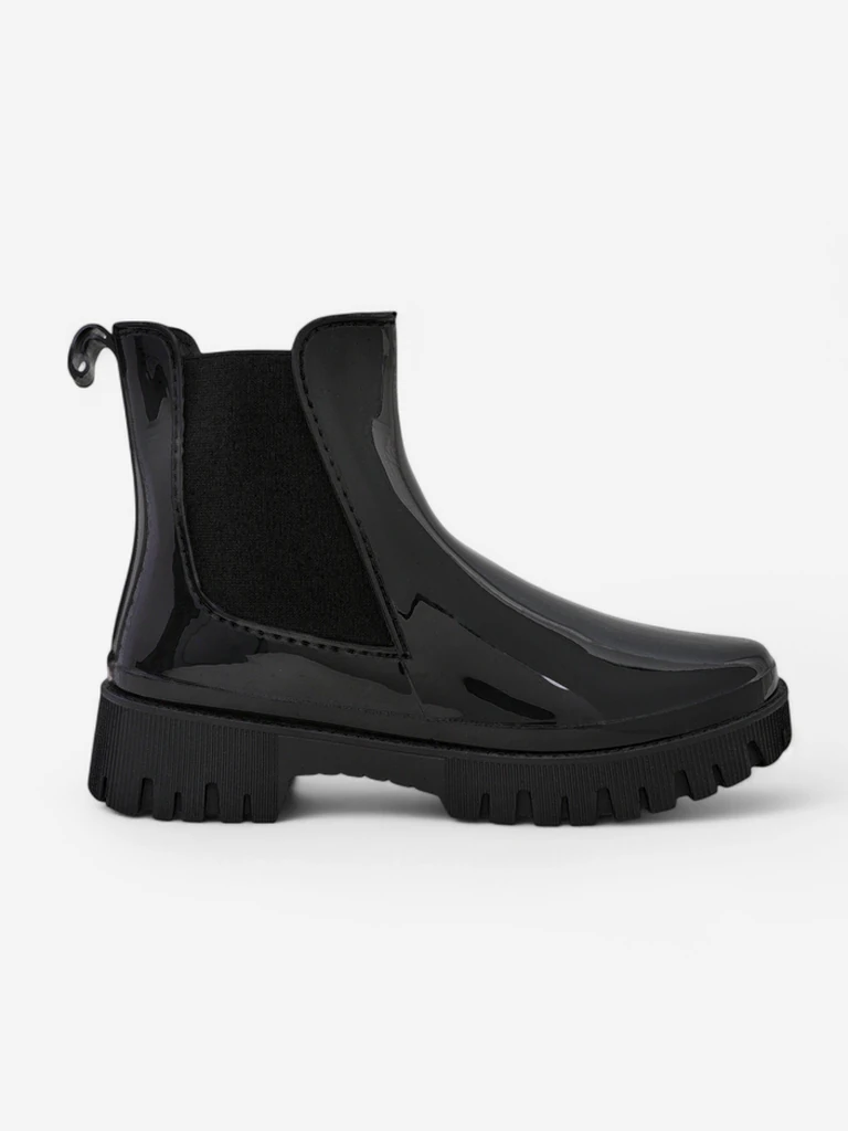 - Klasične ženske gumene čizme napravljene od gumene podloge sa lakiranim finišem. Uložak je napravljen od tekstilnog materijala. Obuća savršena za kišne jesenske dane!
