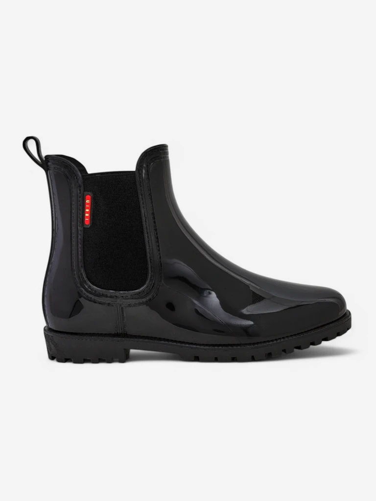 - Klasični ženski gumijasti škornji z lakiranim zaključkom. Notranji vložek je iz tkanine. Obutev, primerna za jesenske deževne dni!