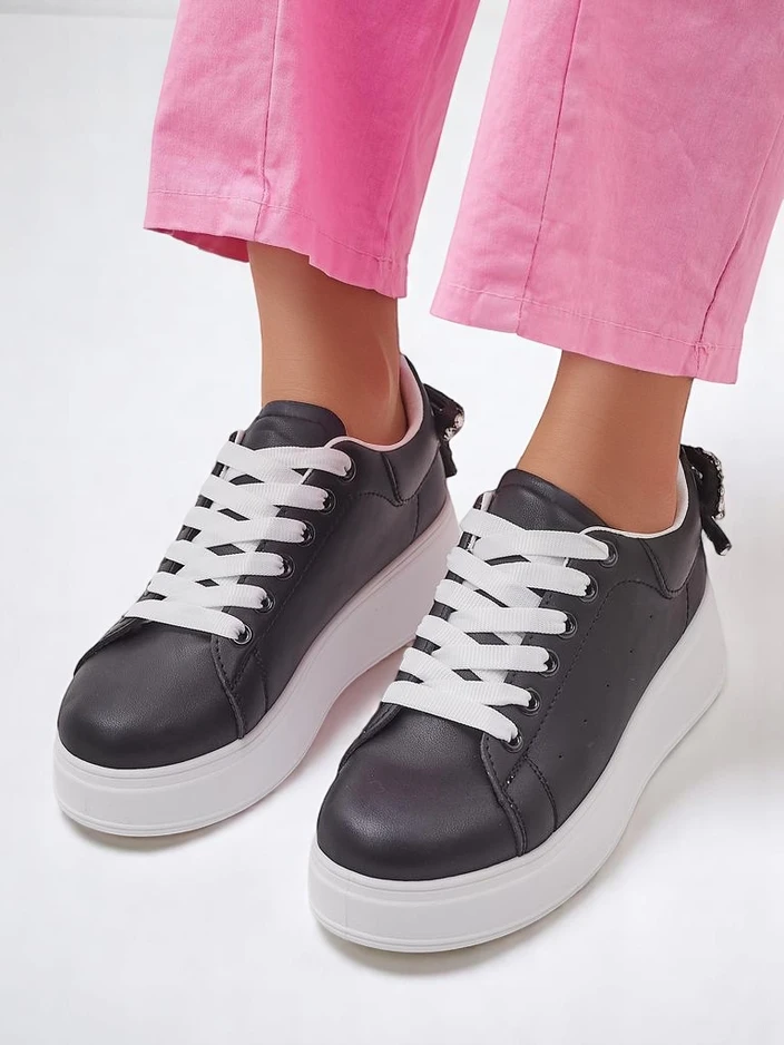 - Ženske superge iz ekološke usnje na platformi. Model z vezalkami, vsebuje ekološki usnjen vložek. Obutev ima vezalke. Popolne za ustvarjanje stilskih outfitov!