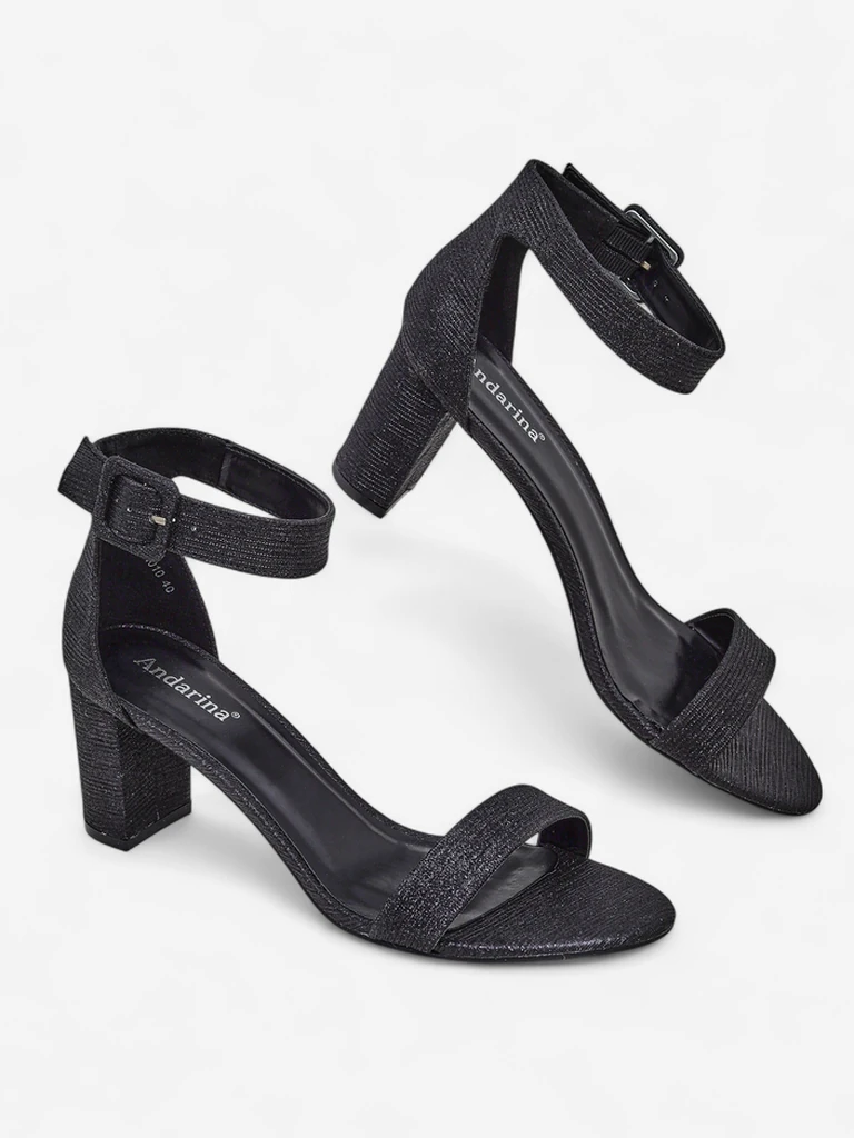 - Ženski Sandali na Bloku - popolna ideja za vroče poletne dni. Model je izdelan iz bleščečega materiala z ekološkim usnjem na podplatu. Čevlji so zavezani z sponko. Kombinacija sloga in udobja!