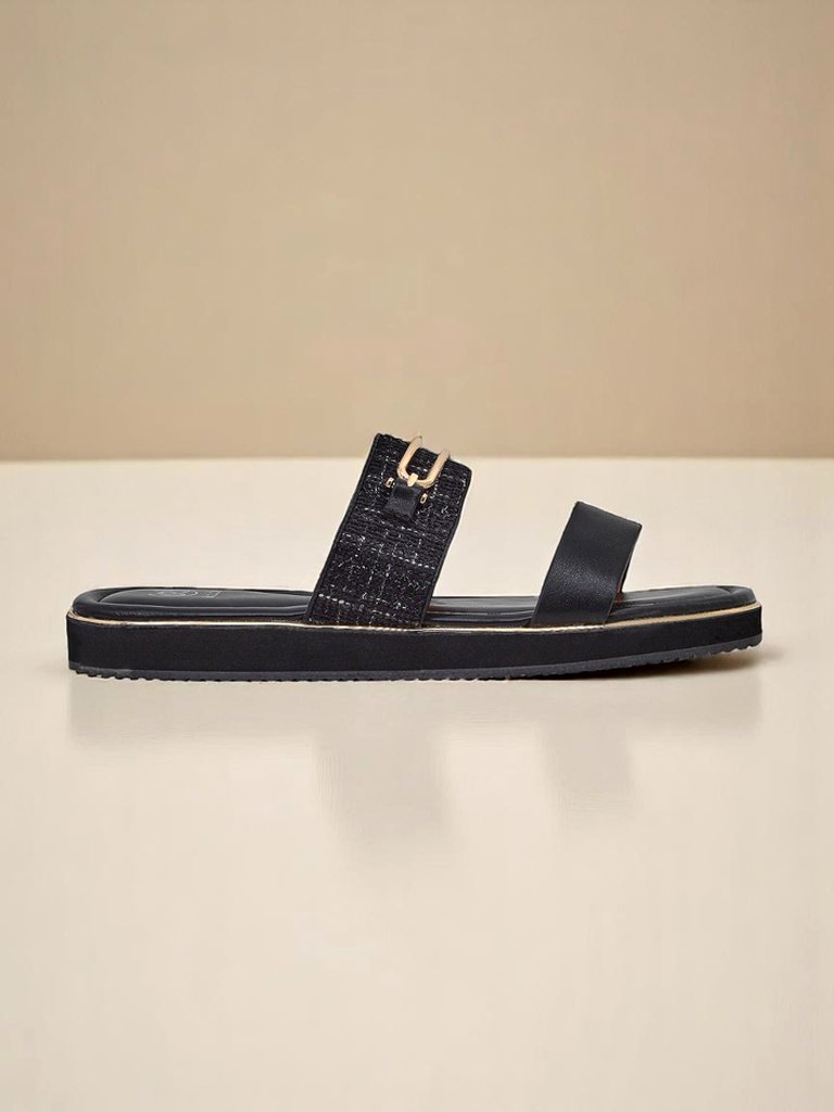 Aurelia natikači so poosebljenje poletne elegance in udobja. Izdelani so iz visokokakovostnega umetnega usnja, ki zagotavlja udobje čez cel dan. Nežni, zlati zaponki dodajajo eleganco, rjavi podplat s subtilnim žlebom pa zagotavlja stabilnost in oprijem.