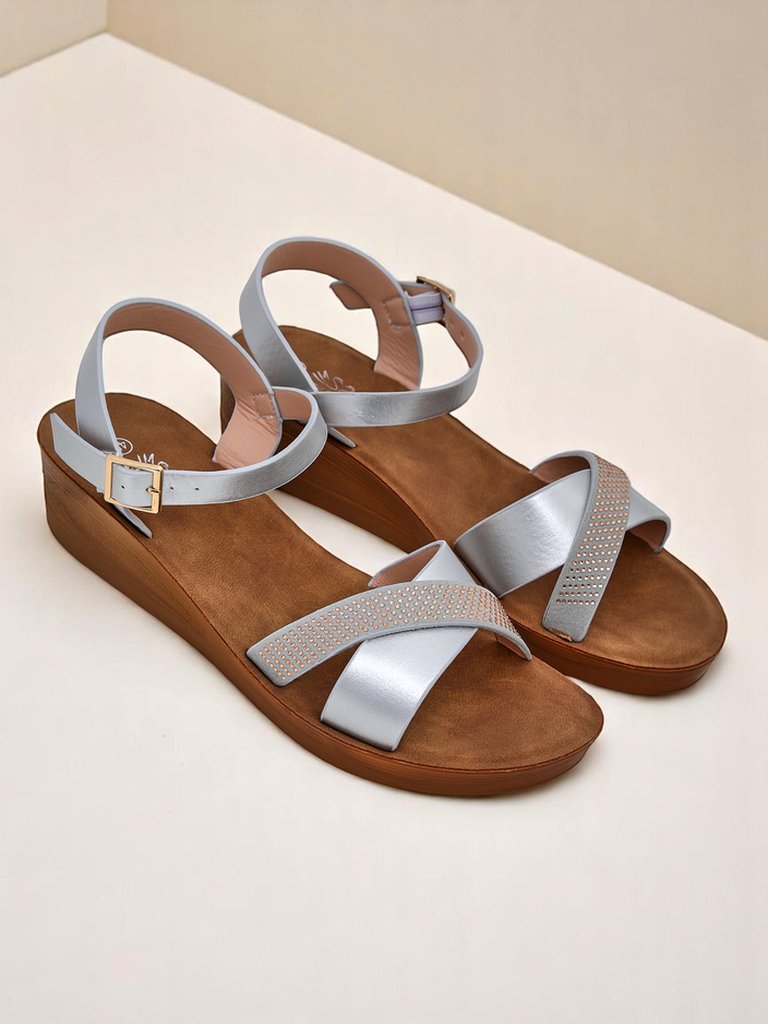 Royalfashion Ženski sandali z wedge peto in okrasnimi kamenčki Allona