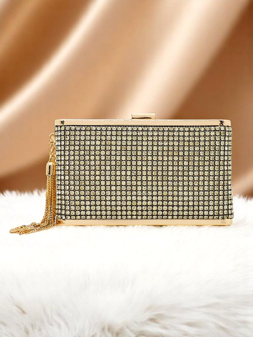 - Večerna pisemska torbica z bleščicami, zapira se na pritiskač. Majhna, elegantna, z odstranljivimi trakovi — lahko jo nosite v roki ali na rami. Doda sijaj vsakemu videzu!