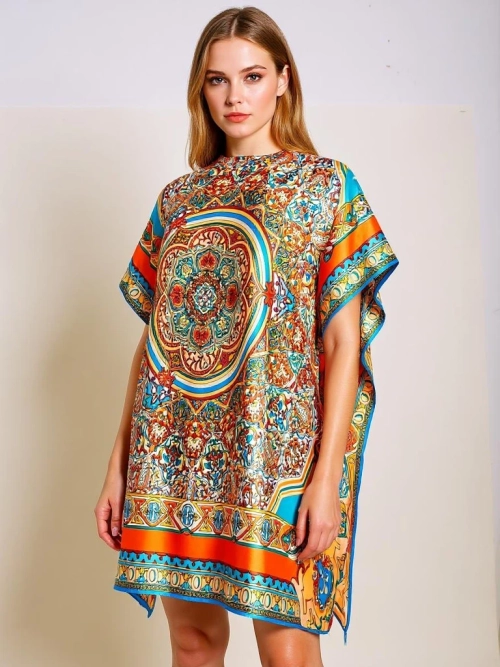 - Lahka, vzorčasta tunika za na plažo tipa pareo je idealna izbira za poletje. Zračna in elegantna, odlična za na plažo ali ob bazenu. Poudarja žensko silhueto, zagotavlja udobje in moden videz v vročih dneh. Nepogrešljiv del vsakega počitniškega kovčka!