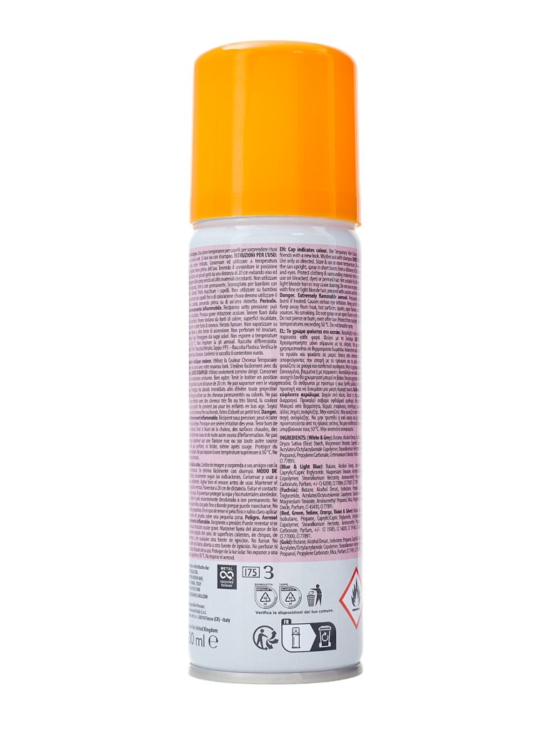 - Barvni sprej za lase je hiter način za doseganje izrazite spremembe videza. Zagotavlja intenzivno barvo, las ne obteži in se zlahka izpere. Popolno za zabave in posebne priložnosti.