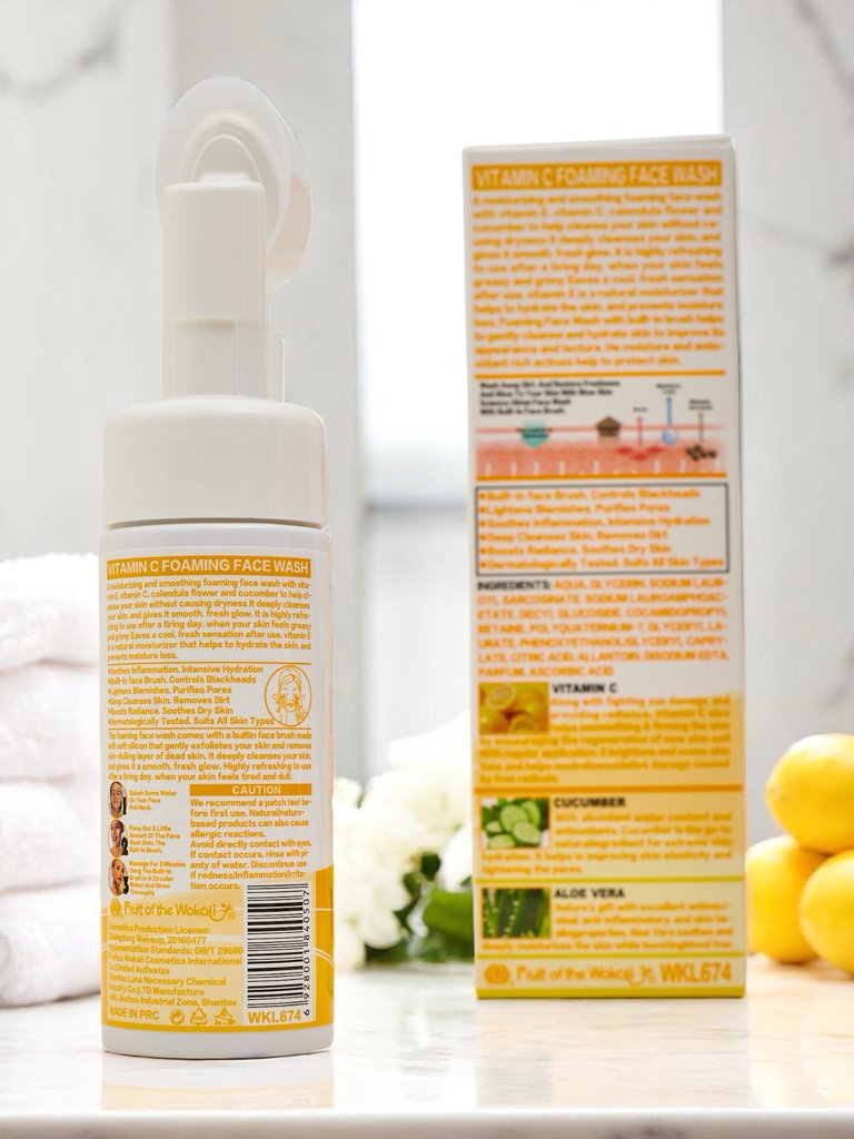 - Čistilna pena za obraz z vitaminom C in krtačko. Nežno odstrani nečistoče, osvetli kožo in ima anti-age učinek ter pusti polt svežo, gladko in sijočo.