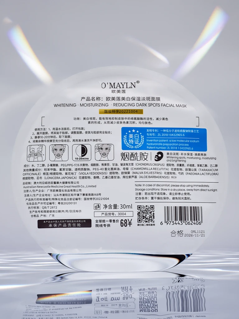 - Posvetlitvena in vlažilna maska za obraz intenzivno vlaži kožo, izenači ten kože in doda sijaj. Idealna za utrujeno, pusto kožo – po samo eni uporabi je koža sveža, gladka in sijoča.