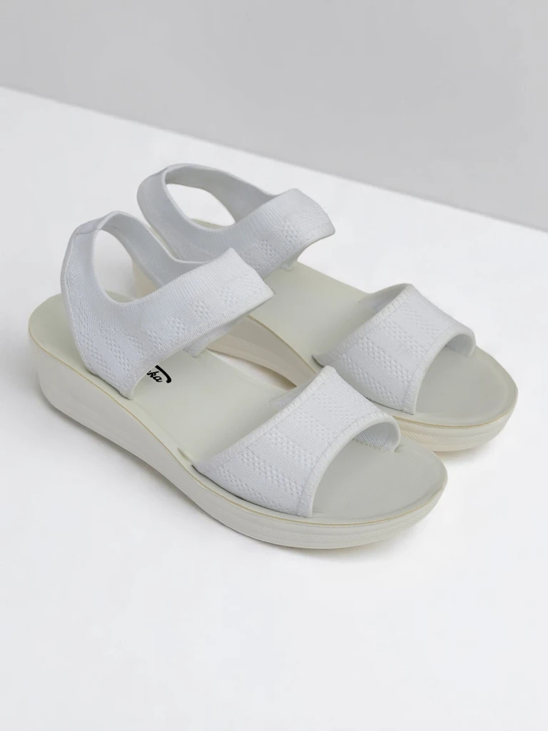 Sandali Luminosa so elegantni in izjemno lahki sandali s platformo, ki združujejo brezčasno klasiko in moderno tehnologijo izdelave. Zgornji del je izdelan iz visokokakovostne, zračne poliestrske pletenine, ki ni le odporna na raztezanje in deformacije, temveč zagotavlja tudi neprimerljivo zračnost stopal tudi v najtoplejših dneh. Platformni podplat iz pene EVA zagotavlja lahkotnost in odlično blaženje – vaši koraki bodo mehki in samozavestni ves dan. Vsi materiali so bili izbrani s skrbjo za vaše zdravje in udobje ter izpolnjujejo standarde certifikatov OEKO-TEX®. Sandali ne vsebujejo škodljivih snovi in so varni tudi za občutljivo kožo. Dizajn odlikuje minimalističen dizajn in širok ježek, ki omogoča enostavno prilagajanje čevlja obliki stopala. Podloga je izdelana iz mehkega, hipoalergenega sintetičnega materiala, nežnega na dotik, ki preprečuje odrgnine. Najpomembnejše prednosti sandalov Luminosa so lahkotnost, zračnost in izjemno enostavno vzdrževanje. Ustvarjajo edinstven občutek svežine v vročih dneh, anatomska oblika podplata pa podpira udobje med dolgimi sprehodi. Stilski navdihi: 1. Ležeren videz: Sandale kombinirajte z belimi lanenimi hlačami in pastelno majico – idealna izbira za sprehod po mestu ali nakupovanje. 2. Poletna eleganca: Sandale kombinirajte z lahko, zračno midi obleko in veliko nakupovalno torbo za srečanje v kavarni. 3. Športni vibe: Nosite jih s kratkimi hlačami in preveliko majico – stajling za počitniški izlet ali aktiven dan na prostem. Navodila za nego: Sandale nežno očistite z vlažno krpo z dodatkom blagega mila, izogibajte se pranju v pralnem stroju. Sušite stran od virov toplote, da ohranite elastičnost materiala. Shranjujte v suhem prostoru, najbolje v originalni škatli. Trendi: Svetla paleta bež in bele barve ter odprta tekstura so trenutno zelo moden element poletne obutve. Platforma zagotavlja dodatno udobje in se popolnoma prilega mestnemu, lahkemu vsakdanjemu stilu.