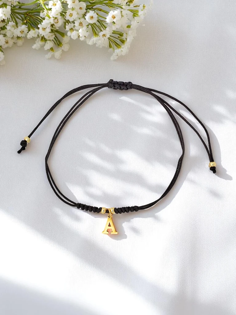 - Elegantna nastavljiva zapestnica s vrvico, okrašena s črko. Diskretna in personalizirana, popolna za vsakodnevno nošenje. Idealna izbira za tiste, ki cenijo unikatne poudarke v nakitu, saj vsaki opravi doda značaj.