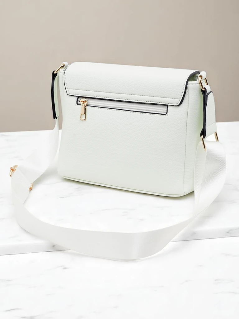 • Kompaktna torbica iz eko usnja z enim predalom in dvema praktičnima žepoma. Nastavljiv pas omogoča prilagajanje dolžine, dekorativni sprednji del pa doda eleganco. Popolna za vsakodnevno uporabo – združuje slog in funkcionalnost v lahki obliki.