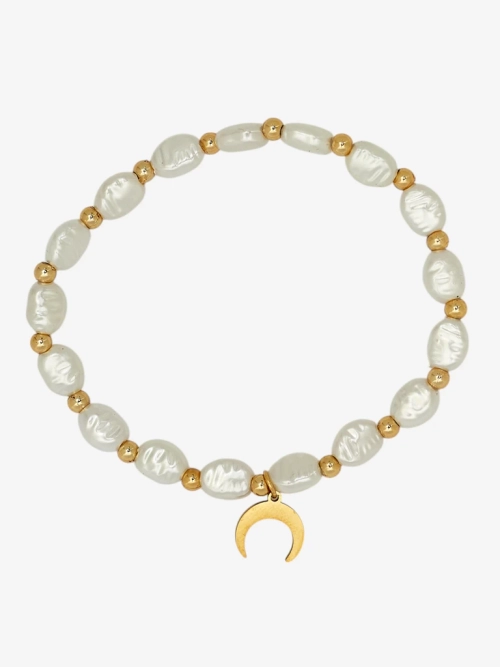 - Nežna ženska zapestnica na elastični vrvici, okrašena z biseri in perlicami. Njeno privlačnost dodatno poudari čudovit obesek, ki subtilno pritegne pozornost. Popolna tako za elegantne kot vsakodnevne kombinacije z pridihom elegance.
