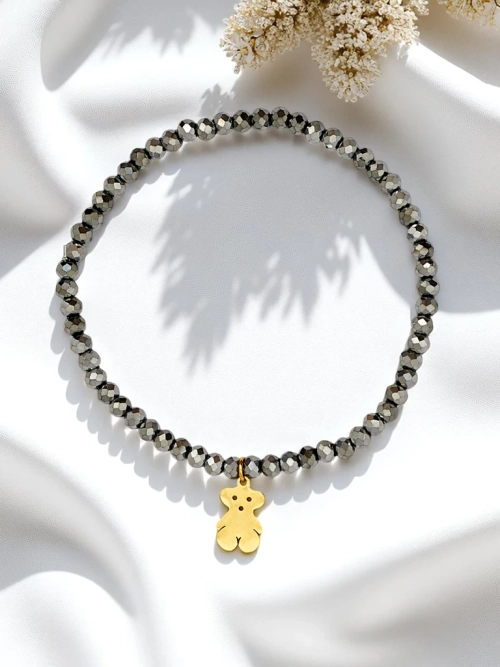 - Zapestnica z biseri in obeskom medvedka je očarljiv in topel modni dodatek, ki simbolizira skrb, nežnost in otroško veselje. Popolno kot darilo ali osebni okras, vsaki opravi doda kanček sladkosti in brezskrbnega duha.