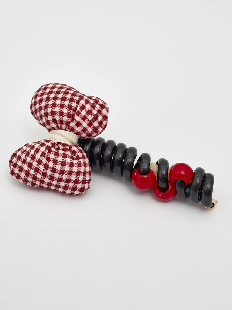 - Elastična gumica za lase Trak v obliki spirale s prikupno mašno. Omogoča močan, a hkrati nežen oprijem vaših las, ne da bi jih poškodovala. Sodobni in praktični modni dodatek, ki bo vsaki pričeski dodal kanček dekliškega šarma.