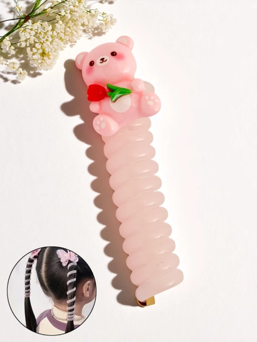 - Elastična lasna gumica Teddy Twist v obliki spirale, okrašena s prikupnim plišastim medvedkom. Nežno drži lase brez poškodb in doda pričeski sladek, otroški čar. Idealna za vsakodnevno uporabo in igro.