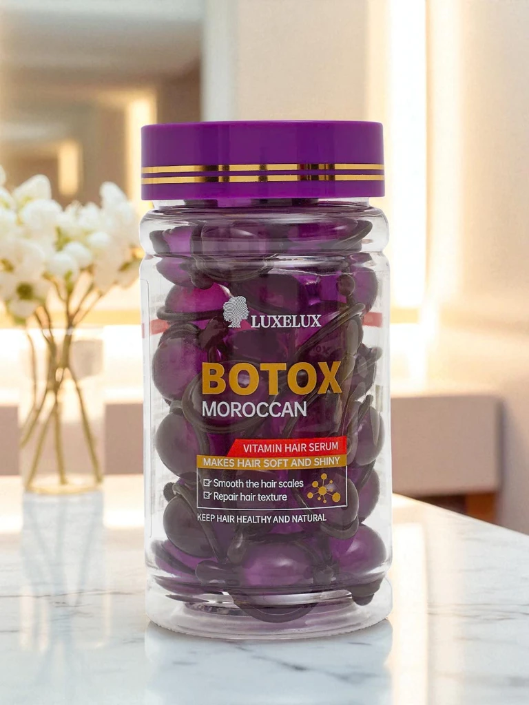 • Serum za lase Botox Maroški, multivitaminski z arganovim oljem, globoko vlaži in gladi lase.