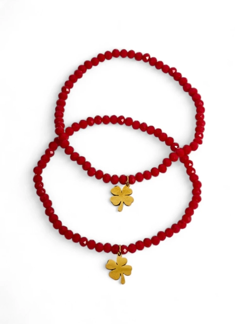 - Zapestnica z biseri in obeskom deteljice je eleganten talisman sreče. Nežna in elegantna simbolizira blaginjo, upanje in pozitivno energijo. Idealna za vsak dan kot subtilen dodatek z edinstvenim sporočilom.