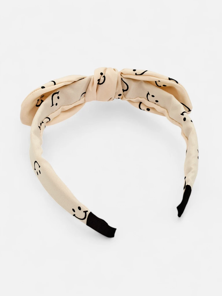 - Očarljiv otroški lasni trak s pentljo, okrašeno s potiskom nasmejanih obrazov. Udoben, elastičen in idealen za vsakodnevno oblikovanje - vsakemu otroškemu videzu bo dodal veselje!