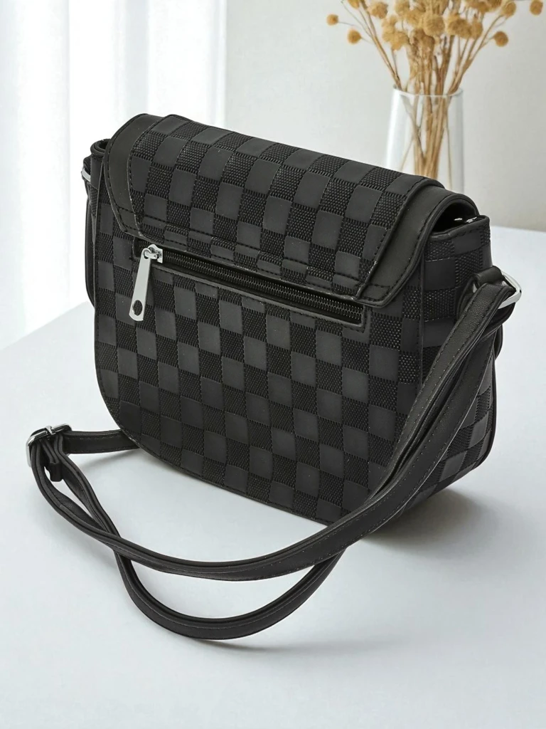 - Majhna ženska torbica iz ekološkega usnja z modnim karirastim vzorcem. Zapiranje na zadrgo, nastavljiv trak in en predal nudijo praktičnost in stil za vsakodnevno uporabo. Idealna za telefon, denarnico in manjše predmete.