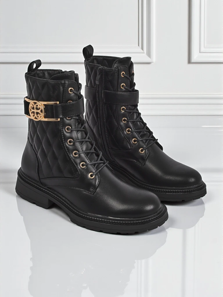 Črni gležnarji s prešitim zgornjim delom in zlatimi detajli so hit aktualnih kolekcij – poudarjajo individualni stil in združujejo udobje z luksuznim videzom. So nepogrešljiv element garderobe za vsako moderno žensko, ki ceni modo in udobje.