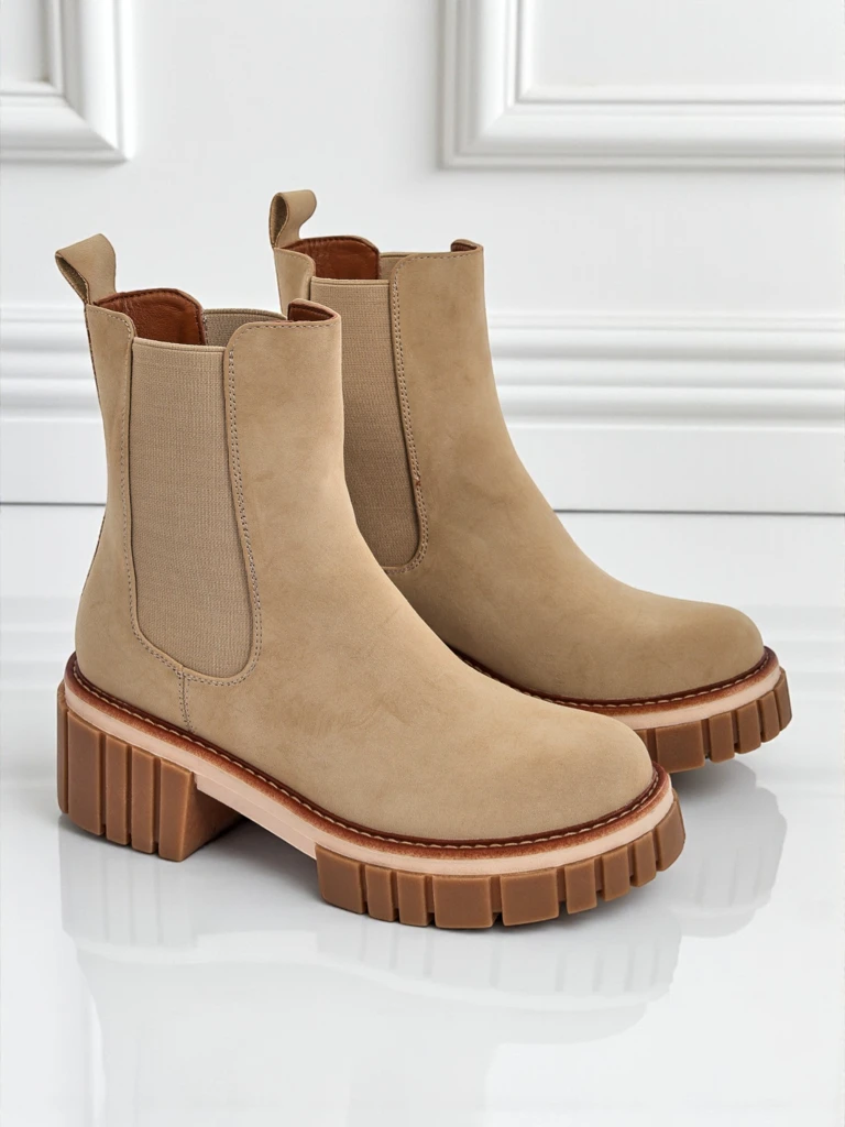 Bež gležnarji Callista so izjemna kombinacija klasike in modernosti v ženski izdaji. Izdelani so iz visokokakovostnega ekološkega semiš usnja, nudijo trpežnost in prijeten material na dotik, ki odlično posnema naravni semiš, hkrati pa je enostaven za nego in prijazen do okolja. Proizvodni proces tega usnja vključuje skrbno obdelavo mikrovlaken, kar daje učinek globokega mat zaključka in zagotavlja vzdržljivost tudi pri vsakodnevni uporabi. Poleg tega ima material certifikat kakovosti OEKO-TEX, ki potrjuje odsotnost škodljivih snovi. Gležnarji Callista so ohranjeni v modnem, svetlo bež odtenku. Peta jim daje moderen značaj, hkrati pa zagotavlja stabilnost in udobje med hojo, okrogla oblika pa zagotavlja udobje tudi ves dan. Mehka podloga in elastični stranski vstavki omogočajo enostavno obuvanje in se idealno prilegajo obliki stopala. Glavne prednosti: - Izjemno udobje zahvaljujoč stabilni peti, - Univerzalni dizajn – primerni tako za vsakdanje kot za bolj elegantne stajlinge, - Odpornost na umazanijo in enostavno čiščenje (zadostuje mehka krtača ali vlažna krpa), - Ekološki material, ki ščiti okolje. Ideje za stajlinge: 1. Za vsakdanji mestni videz jih nosite z oprijetimi kavbojkami, belo srajco in ohlapnim plaščem, 2. Za zmenek ali večerni izhod kombinirajte gležnarje z razširjeno midi obleko in dolgo jopo, 3. Odkrijte eleganco, tako da jih kombinirate s kostimom v nevtralnih barvah – to je moderen preobrat za pisarniške stajlinge! Nega in shranjevanje: Gležnarje čistimo z nežno krtačo, namenjeno semišu, ali z vlažno krpo brez detergentov. Zaščitite pred vlago in intenzivno sončno svetlobo – najbolje jih je shranjevati v zračnem prostoru na originalnih vložkih ali v škatli. Trenutno so masivni podplati in izrazite pete eden najpomembnejših jesenskih trendov, klasična bež barva pa naredi te gležnarje vsestranski predlog za vsako žensko, ki ceni udobje, stil in aktualne modne trende.
