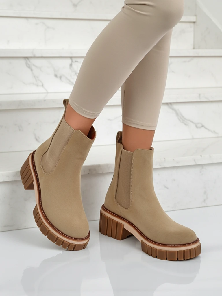- Gležnarji s peto iz eko nubuka Amber Walk – elegantna izbira za jesen. Modni ženski gležnarji, udobni in vsestranski.