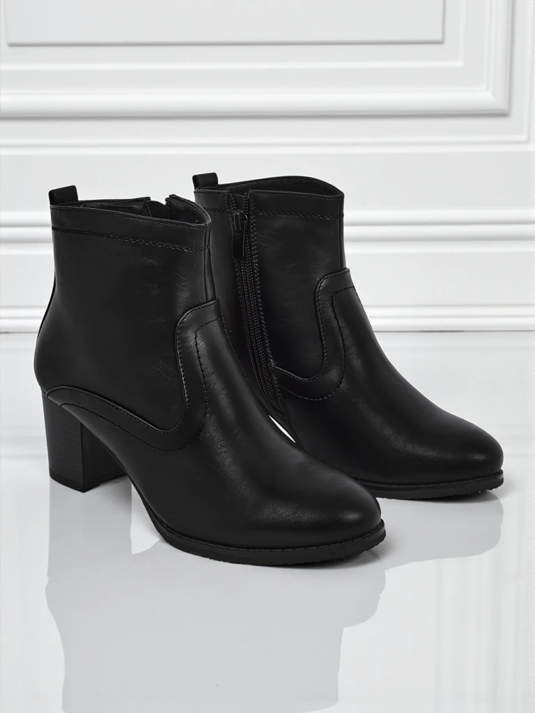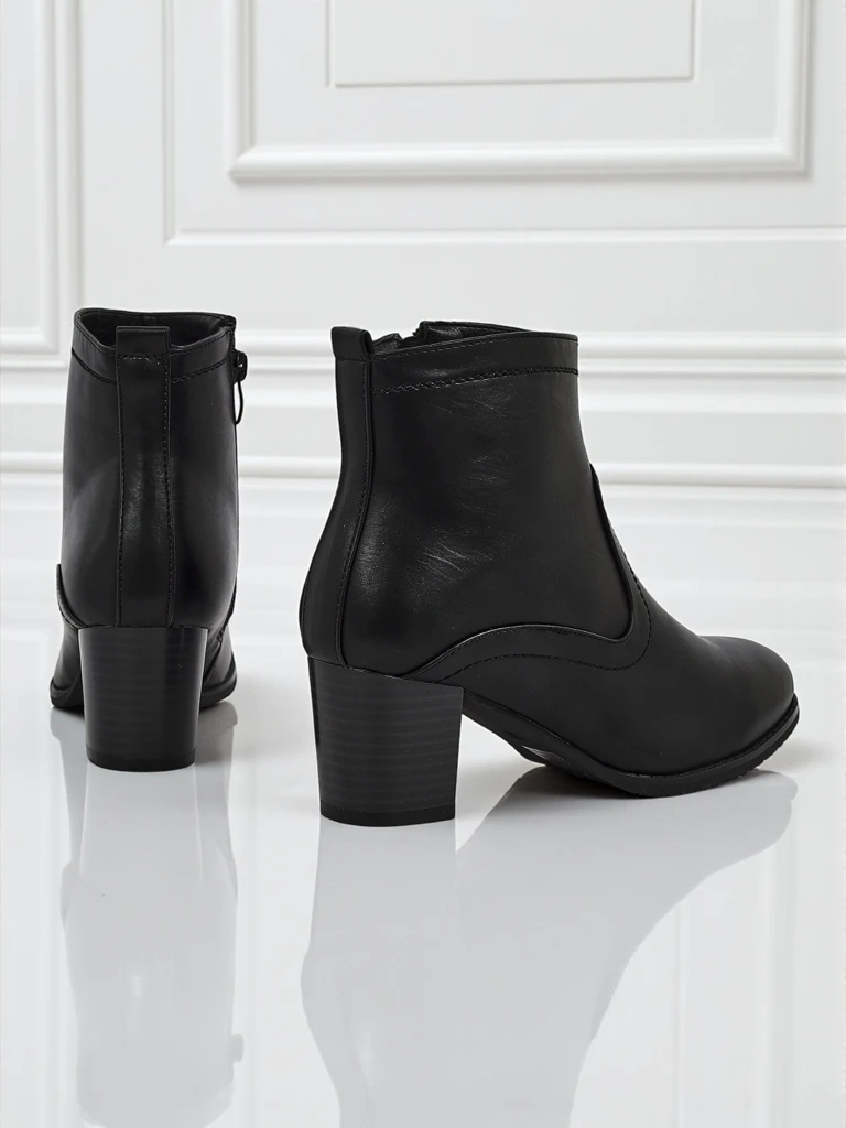 • Izjemne ženski gležnarji s peto, izdelani iz eko usnja. Notranjost je iz nežnega krzna. Model se zapenja z zadrgo. Idealni za jesenske kombinacije!