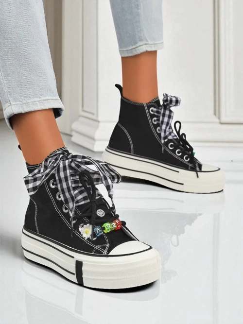 - Modne superge iz blaga na debelejšem podplatu. Okrašene s pisanimi vezalkami in kroglicami. Udobne, lahke in elegantne – idealne za mestne stilske kombinacije in vsakodnevno nošenje. Udobje in trend v enem koraku.