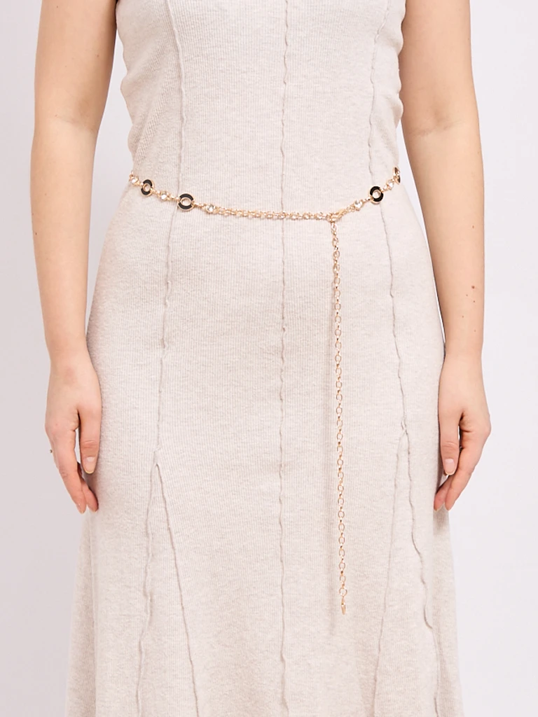 - Modna ženska verižica, izdelana iz kovine in zapenjena s kavljem širine 1 cm. Bo privlačen dodatek k številnim večernim stilom.