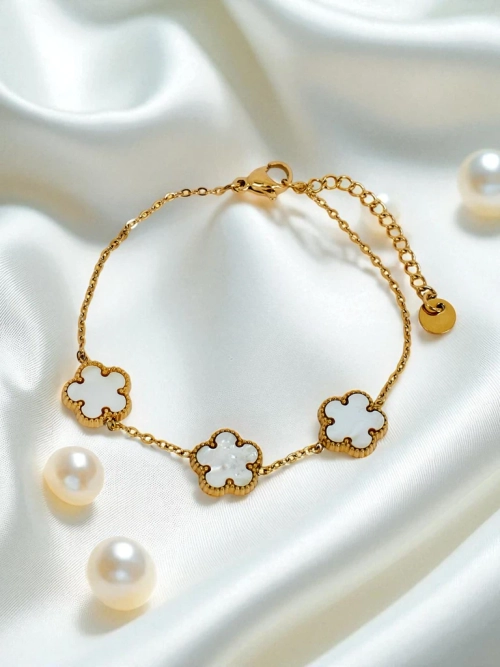 Bransoletka Aurelia Bianca z kwiatami w odcieniu białej perły, złocona