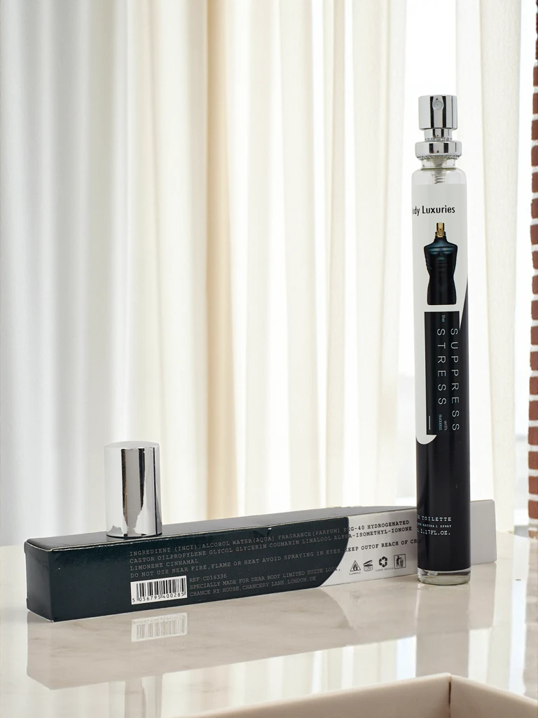 - Moška parfumska voda Stress je energična in izrazita kompozicija, ki združuje svežino z aromatičnimi, globljimi akordi. Poudarja moč in karizmo, idealna za moškega, polnega energije in samozavesti.