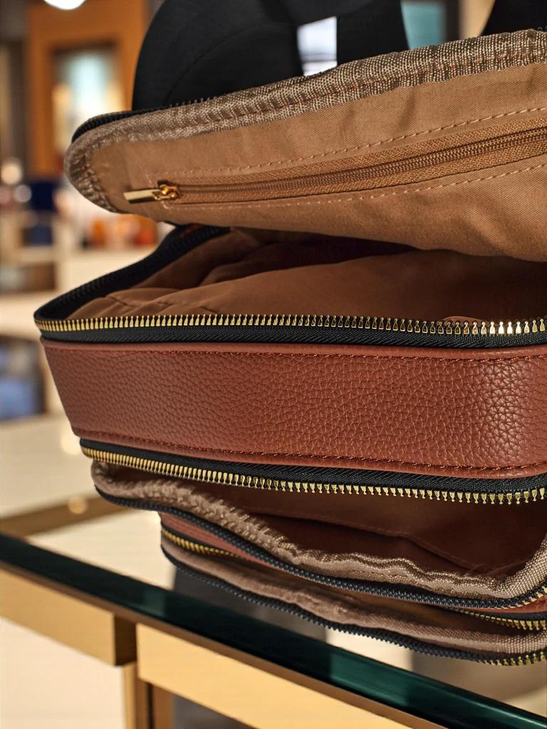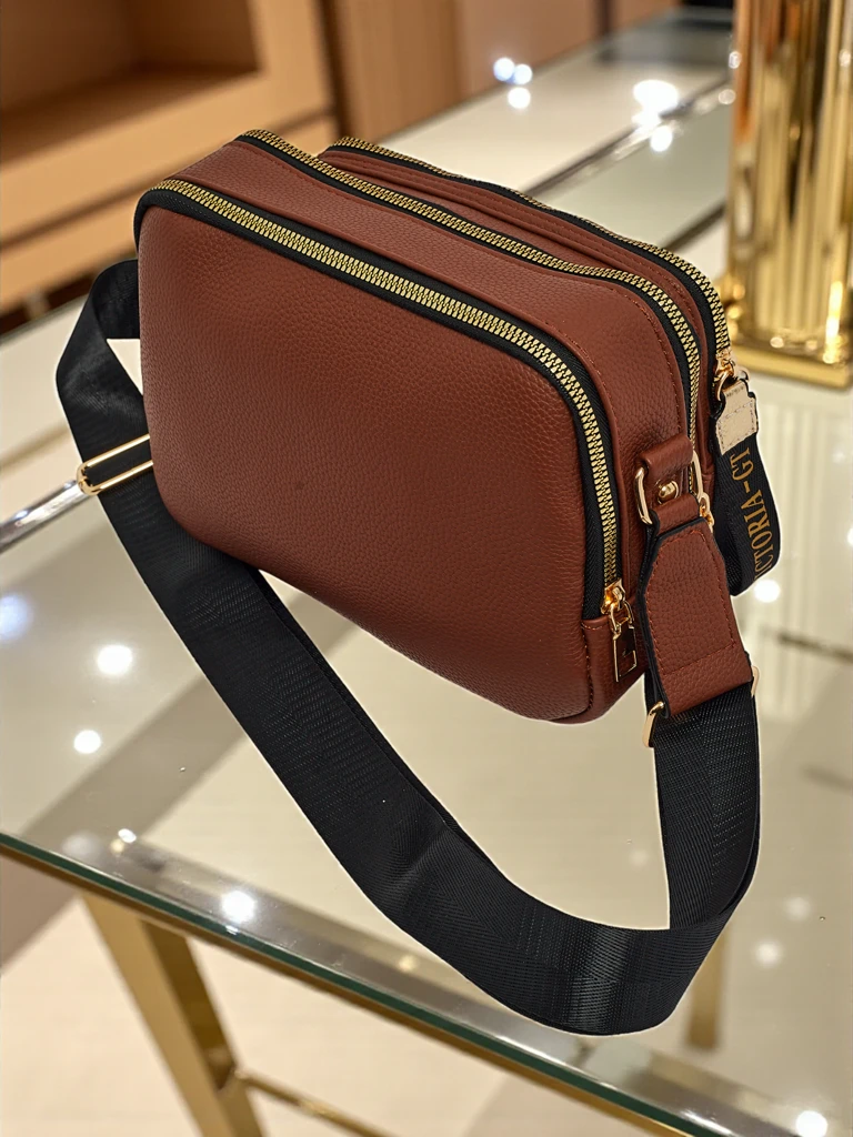 - Stilska majhna torbica iz eko usnja. 2 predelka, 3 žepki, nastavljiv in odstranljiv pas. Idealna za vsak dan in za izhode – kompaktna, a sprejme vse, kar je pomembno.