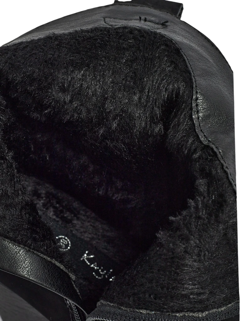 - Gležnarji v stilu kavbojk s peto, izdelani iz mat eko usnja. Notranjost je podložena s krznom, čevlji se zapenjajo z zadrgo z okrasnimi vstavki z bleščicami. Primerni za številne ženske stilske kombinacije!
