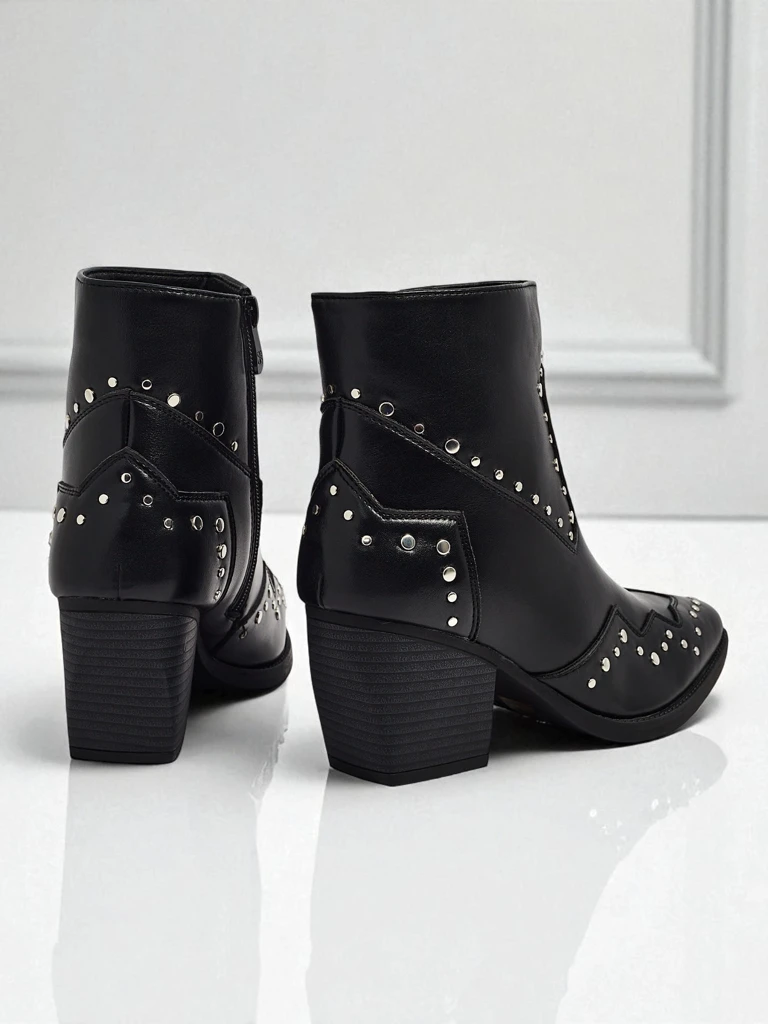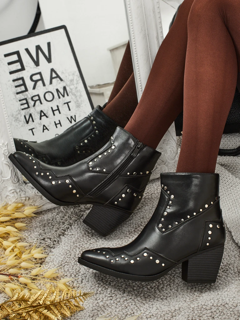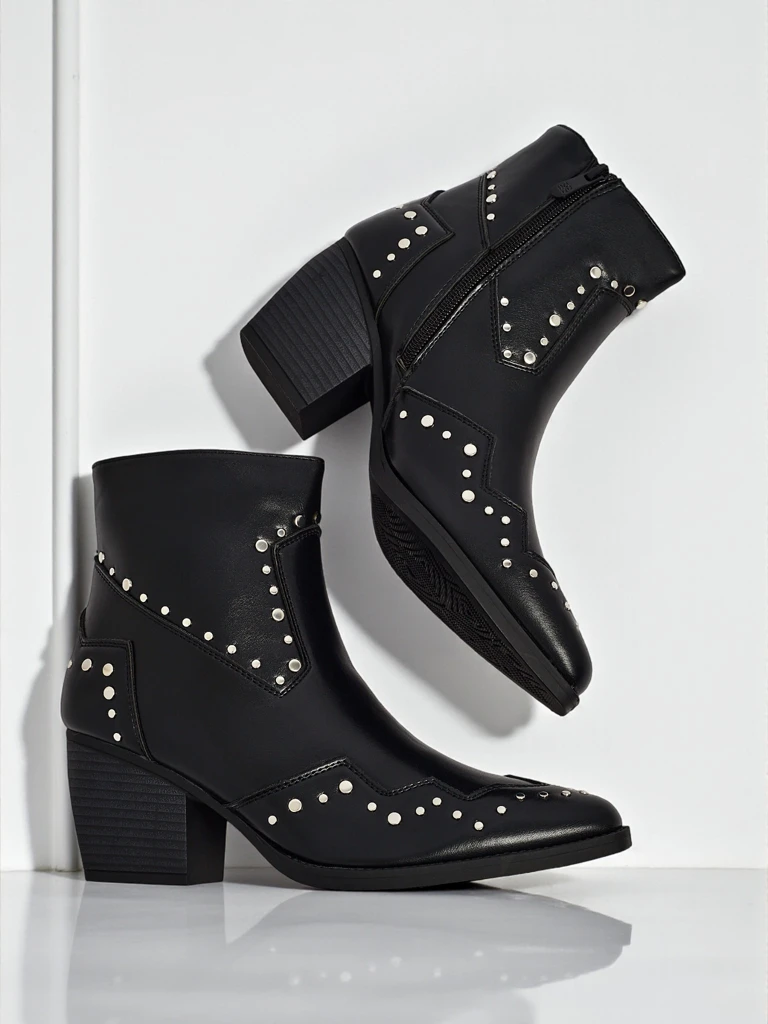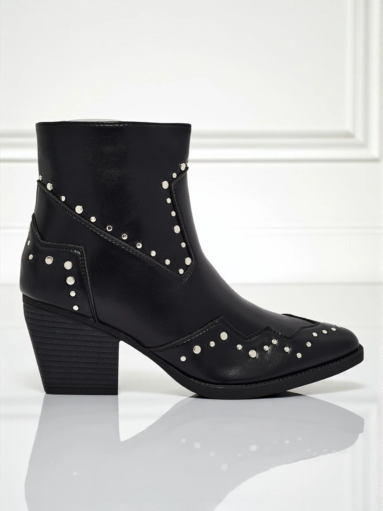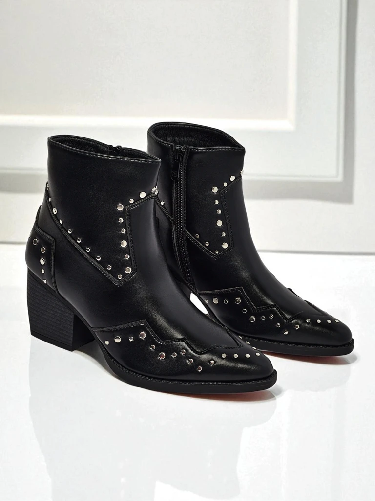 - Kavbojski škornji z visoko peto, izdelani iz ekološkega usnja. Vložek je iz eko usnja, škornji se zapenjajo z zadrgo z okrasnimi neti. Primerni za številne ženske stilske kombinacije!
