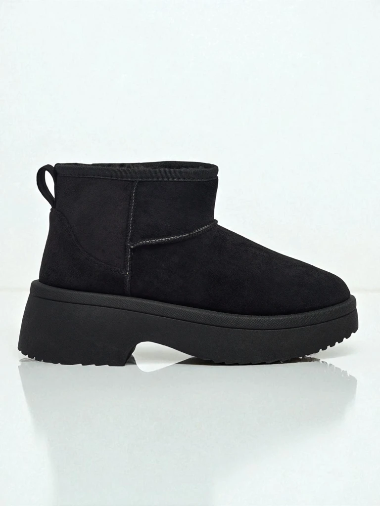 - Odlični ženski zimski škornji za sneg z debelejšim platformnim podplatom. Zgornji del je izdelan iz ekološkega semiš usnja, notranjost pa je izolirana s krznom. Idealna osnova za zimo!