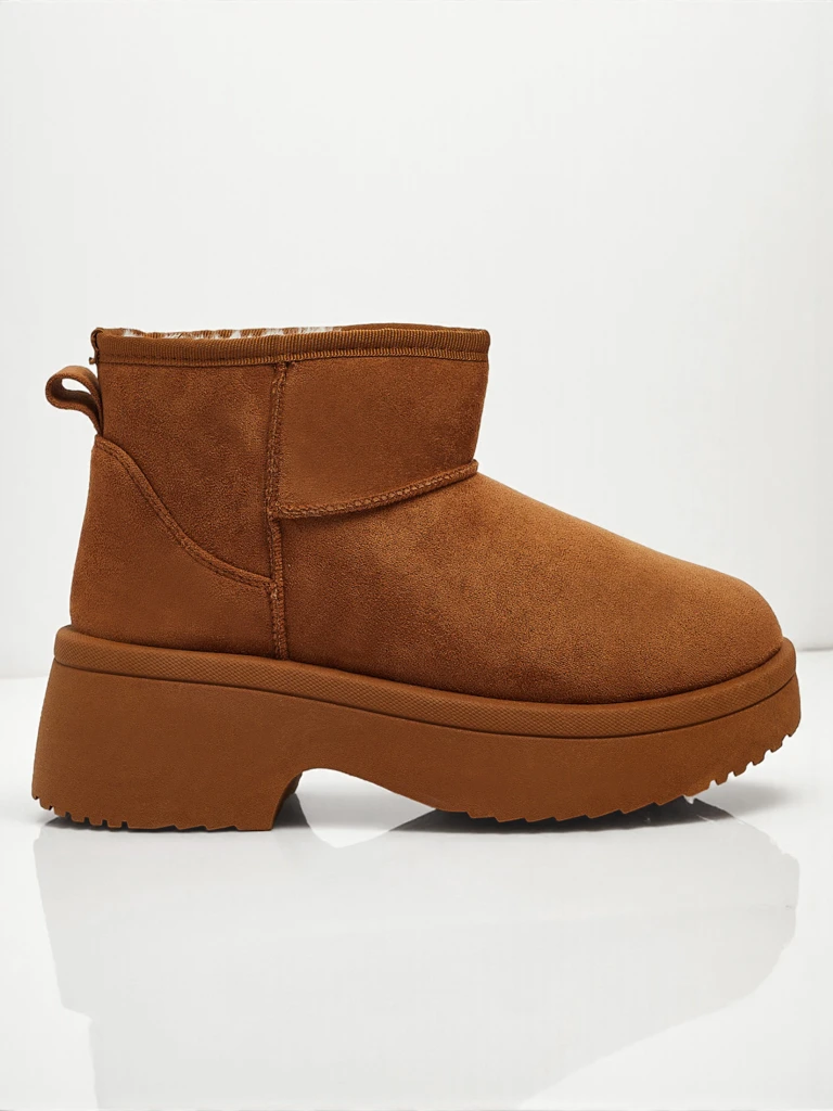 • Odlični ženski zimski škornji za sneg z debelejšim platformnim podplatom. Zgornji del je izdelan iz ekološkega semiš usnja, notranjost pa je izolirana s krznom. Idealna osnova za zimo!