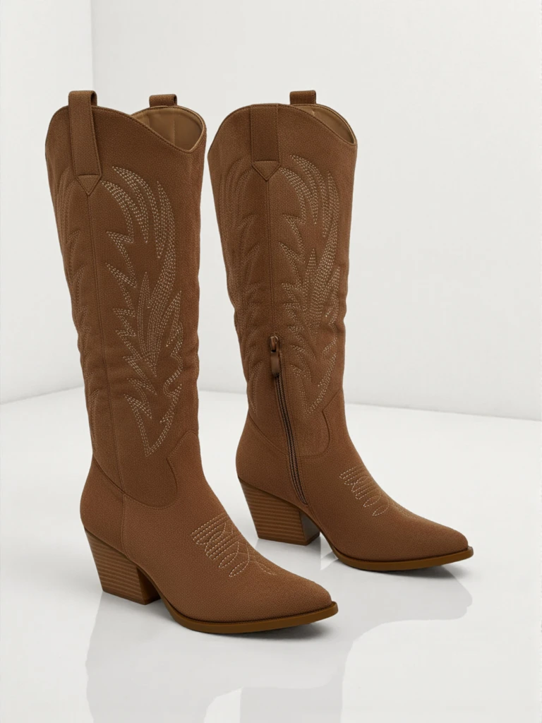 • Kozaki v stilu kavbojk s peto, izdelani iz ekološkega semiš usnja. Obutev se zapenja z zadrgo in ima tekstilno podlogo. Primerni so za številne ženske stilske kombinacije!