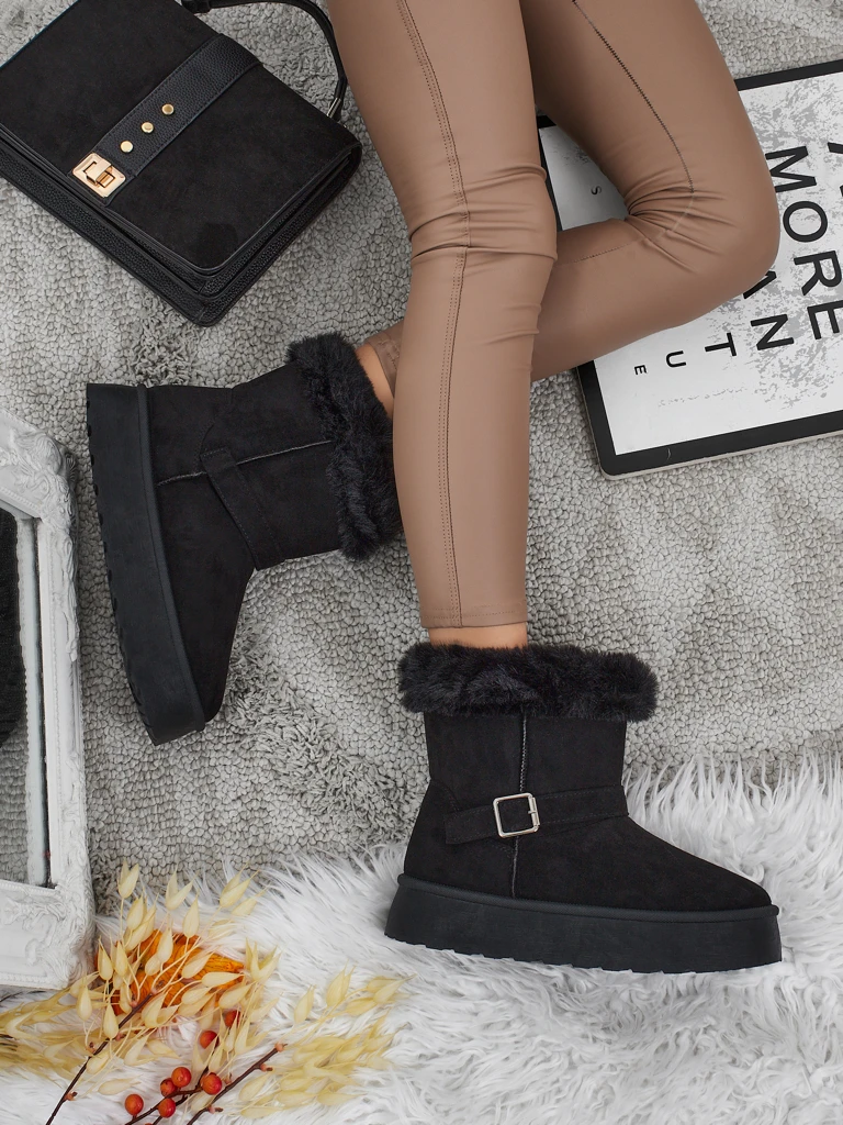 - Odlični ženski zimski čevlji, snežni škornji z debelejšim podplatom. Zgornji del je izdelan iz ekološkega semiš usnja, notranjost je izolirana s krznom. Idealna osnova za zimo!