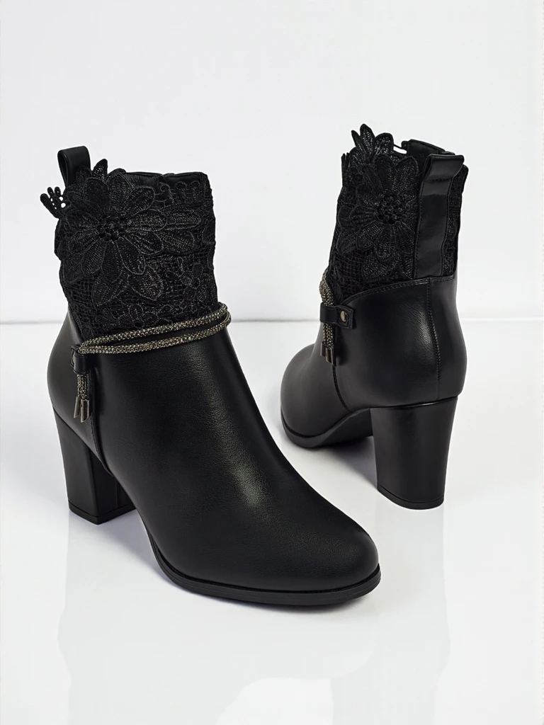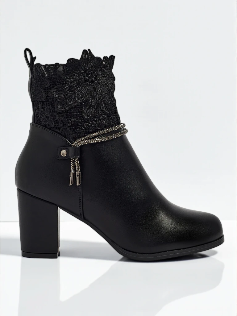 Gležnarji Luna so odlična izbira za ženske, ki cenijo eleganco in udobje. Ustvarjeni z mislijo na vsakodnevno nošenje, so popolni za različne priložnosti, od večernih izhodov do formalnih srečanj. Njihova klasična črna barva in privlačen zaključek s čipkastim detajlom jih naredita izjemno elegantne.