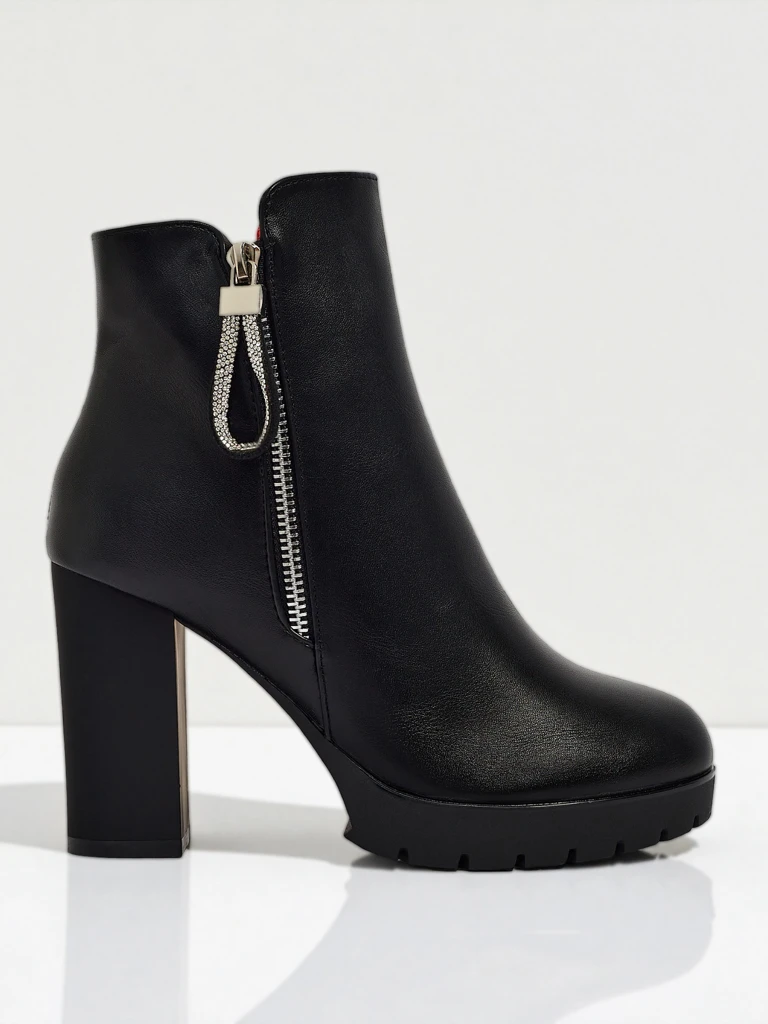 Izdelani iz visokokakovostnega ekološkega usnja, za gležnarje je značilna skrbna izdelava. Opremljeni s trdno zadrgo, olajšajo obuvanje in sezuvanje. Ekološko usnje naredi čevlje privlačnega videza in hkrati praktične. Peta višine 10 cm zagotavlja stabilnost in udobje pri nošenju.